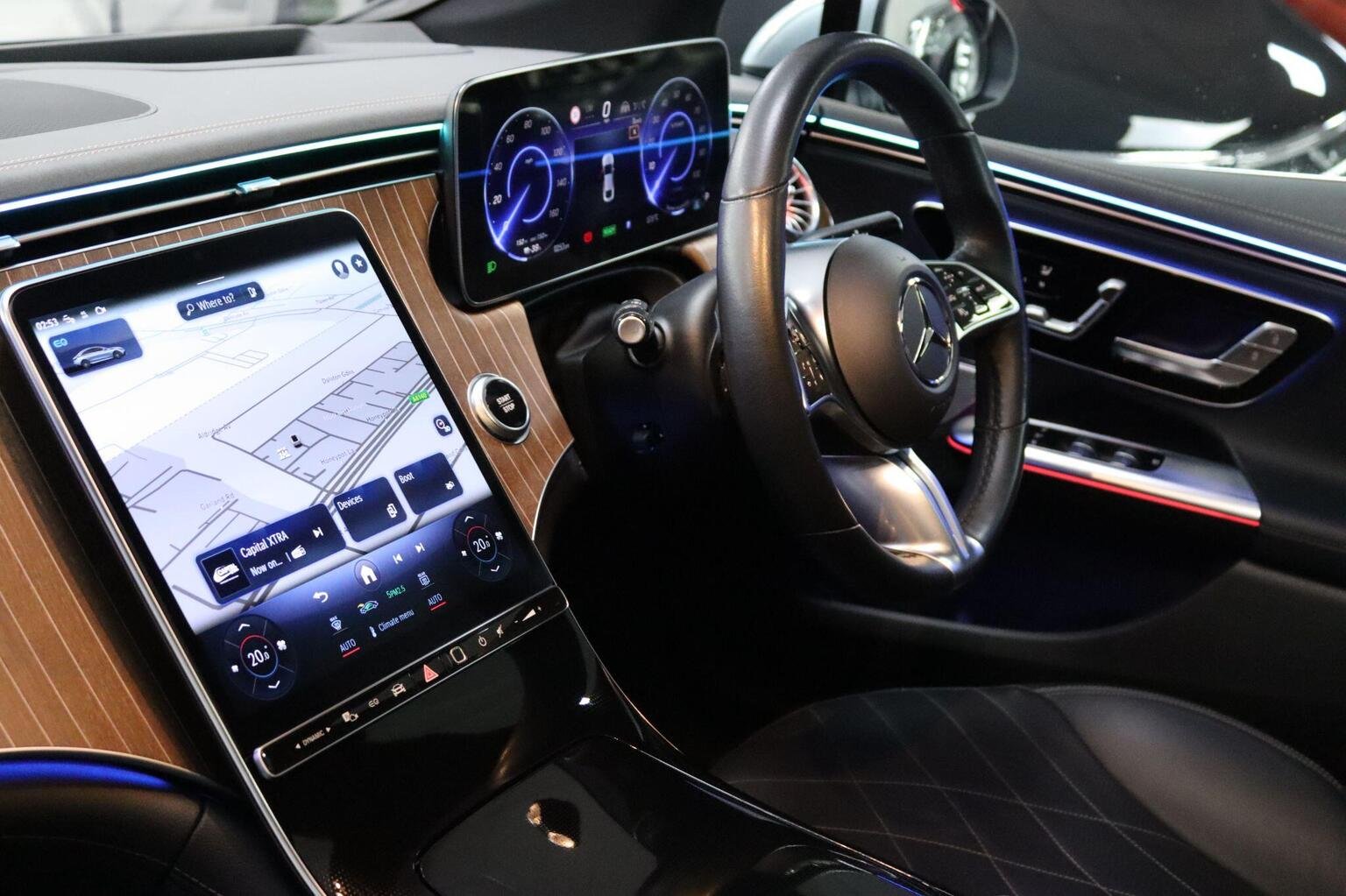 12.3in Digital Instrument Cluster Display, 12.8in Media Display, 170kW DC On-Board Charger, 20in Alloy Wheels - 5-Twin Spoke - Light, 22kW On-Board Charger, ABS - Anti-Lock Braking System, AIRMATIC Air Suspension, AMG Brushed Stainless Steel Sports Pedals with Black Rubber Studs, AMG Multifunction Sports Steering Wheel in Nappa Leather, Acoustic Comfort Package, Acoustic Privacy Glass, Active Traffic Sign Assist, Air Balance Package, Air Quality Package, Airbag - Driver, Ambient Lighting - 64 Colours with Direct Light Lines, Black Velour Floor Mats, Burmester Surround Sound System, CCS-2 Connector - DC Charging with Combined Charging System - Compatible with AC and DC, Climatised Front Seats, Comfort Front Seats, Dashboard and Belt Lines in Space Grey ARTICO Man-Made Leather with NEOTEX Grain and Red Top Stitching, Digital Radio, Driving Assistance Package Plus, Dynamic Select, EASY-PACK Electric Tailgate, EQ Navigation Services, Electric Art Exterior Styling, Electric Art Interior Styling, Electric Windows - Front, Energizing Package, Finger Print Scanner - 3 2 1, HEPA Air Filter, Hard-Disc Navigation, Head-Up Display, Headlamps - Digital Light, Heated Rear Seats, Heated Steering Wheel, Heated Windscreen, Heated Windscreen Washer System, IONITY Unlimited, Interior Light Package, Live Traffic Information - Free for the First Three Years, Lower Trim - Black Fine Structure, Luxury Front Head Restraints, MBUX Augmented Reality for Navigation, MBUX Interior Assistant, Main Trim - Shipdeck Wood, Memory Package, Mercedes Me Charge - Three Year Subscription, Mercedes Me Services, Mercedes-Benz Emergency Call System, Mirror Package, Multifunction Telephony, Panoramic Sliding Sunroof, Parking Package with Active Parking Assist and 360 Degree Camera, Power Assisted Steering, Pre-Entry Climate Control, Pre-Installation for Car Sharing, Remote Parking Function, Roof Lining - Grey Fabric, Smartphone Integration, Split Fold Rear Seats, Storage Compartment Under Centre Console, Summer Tyres, THERMOTRONIC - Automatic Climate Control, TIREFIT, URBAN GUARD Plus, USB Package, Wireless Smartphone Charging - Front
